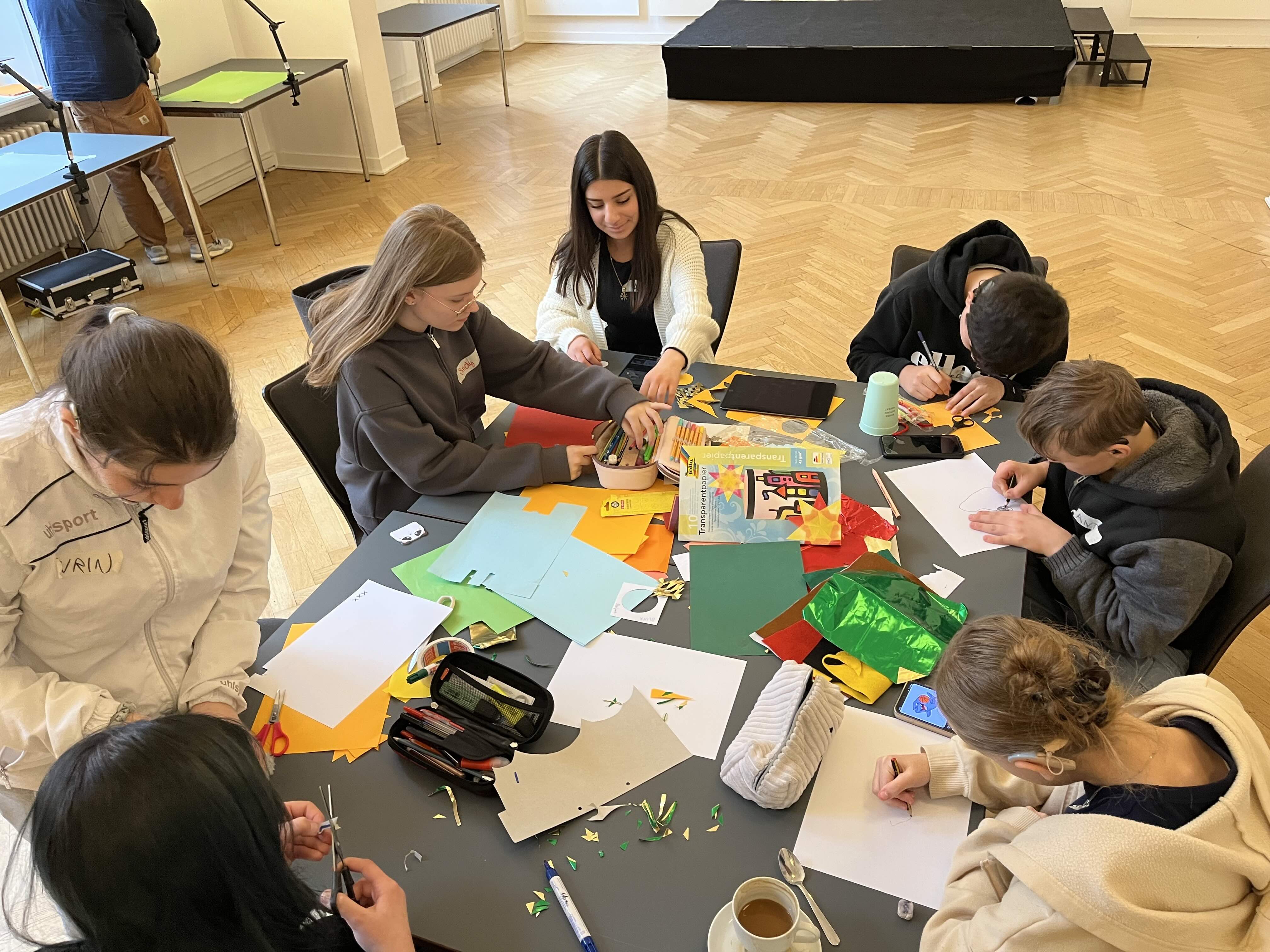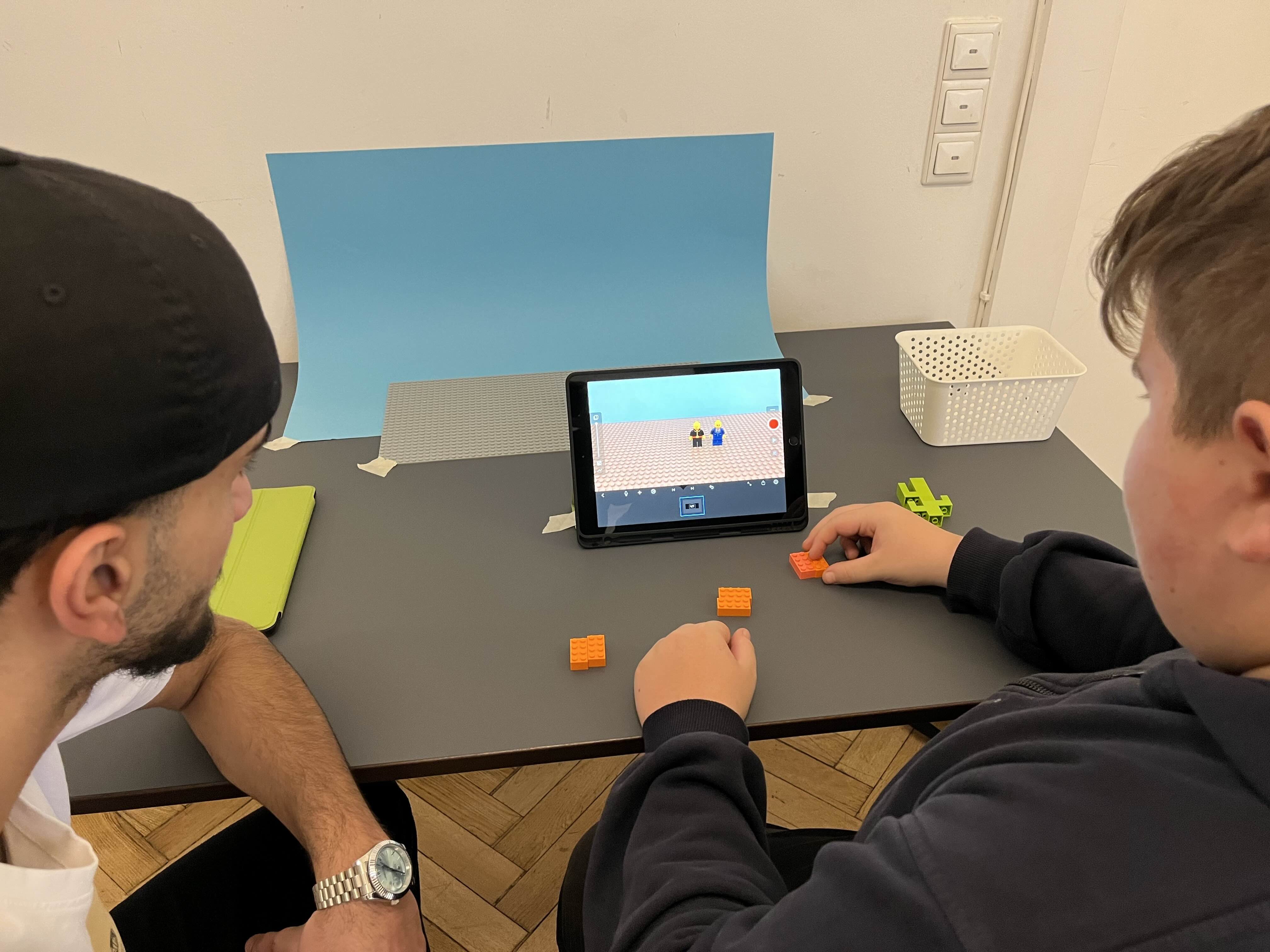 Während einige Schüler*innen mit Stift, Schere und Kleber eine Papierkulisse für ihren Stop-Motion-Film bauen, entsteht nur wenige Meter weiter aus Legosteinen große und kleine Figuren, die zum Leben erweckt werden. In kleinen Filmteams wird konzentriert und arbeitsteilig gearbeitet: Eine bastelt, ein anderer filmt, die nächste übernimmt Regieanweisungen.